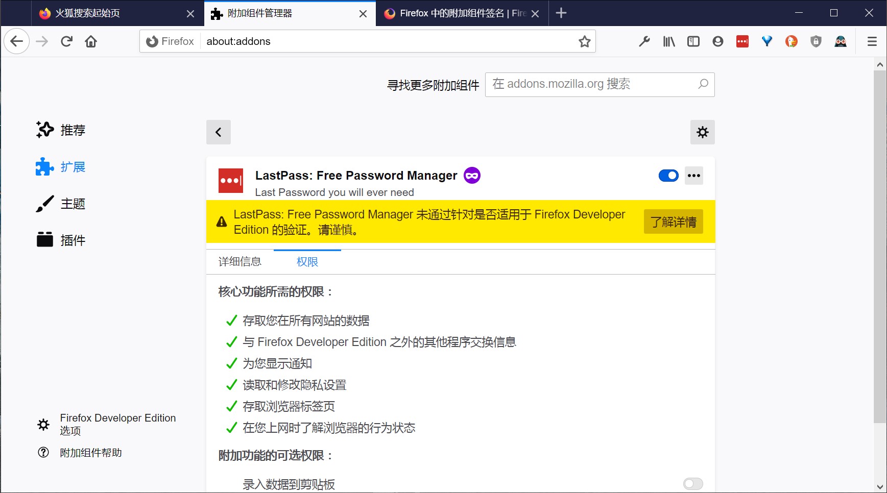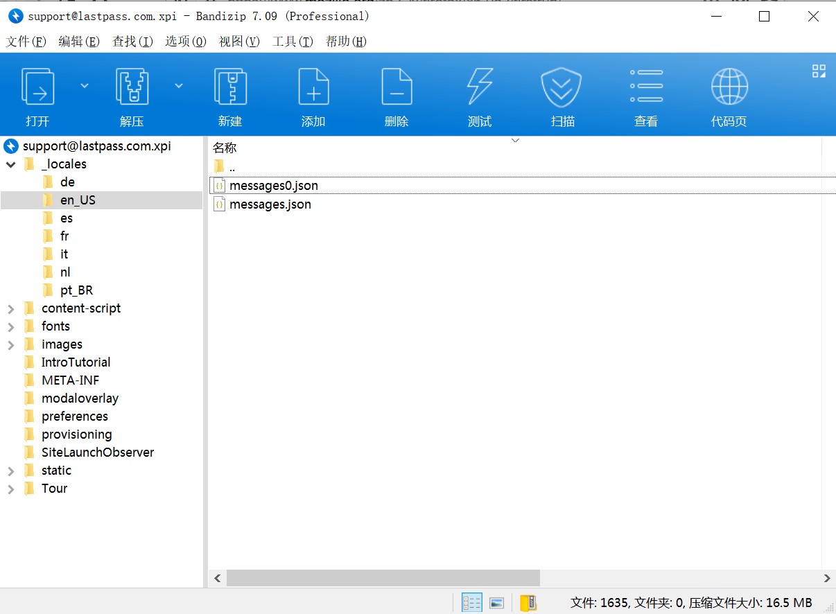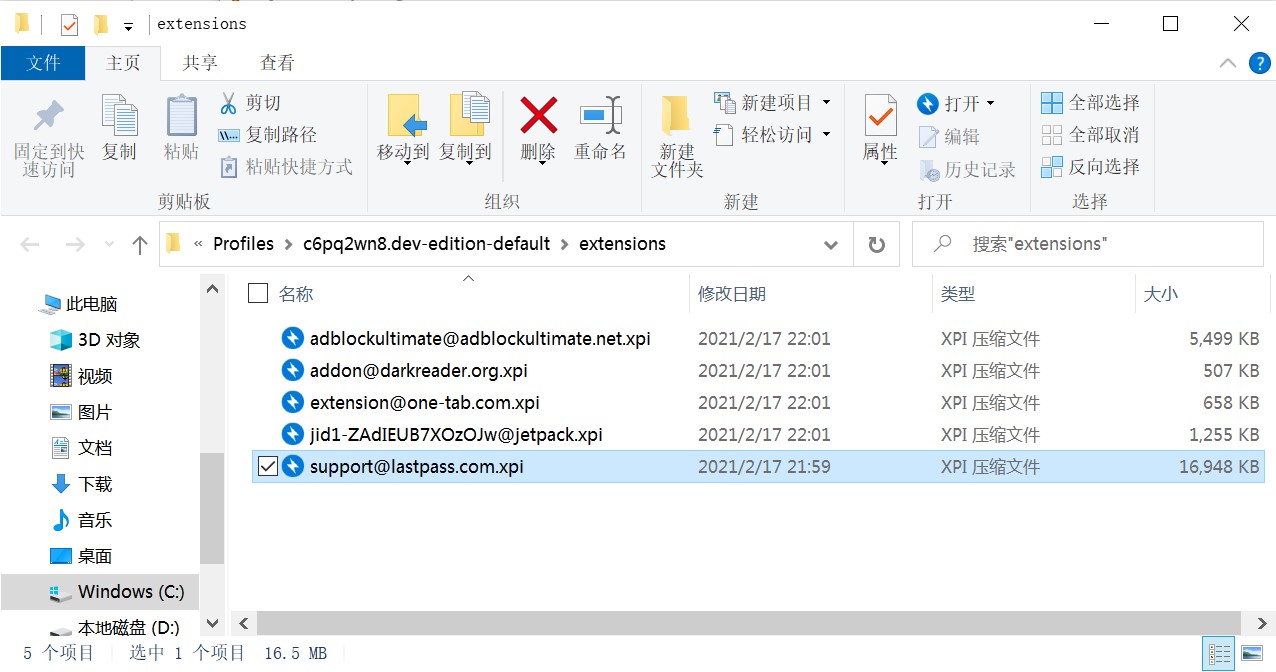 安装后在Firefox 开发者版中安装LastPass 扩展,并打开如下路径,打开 support@lastpass.com.xpi: