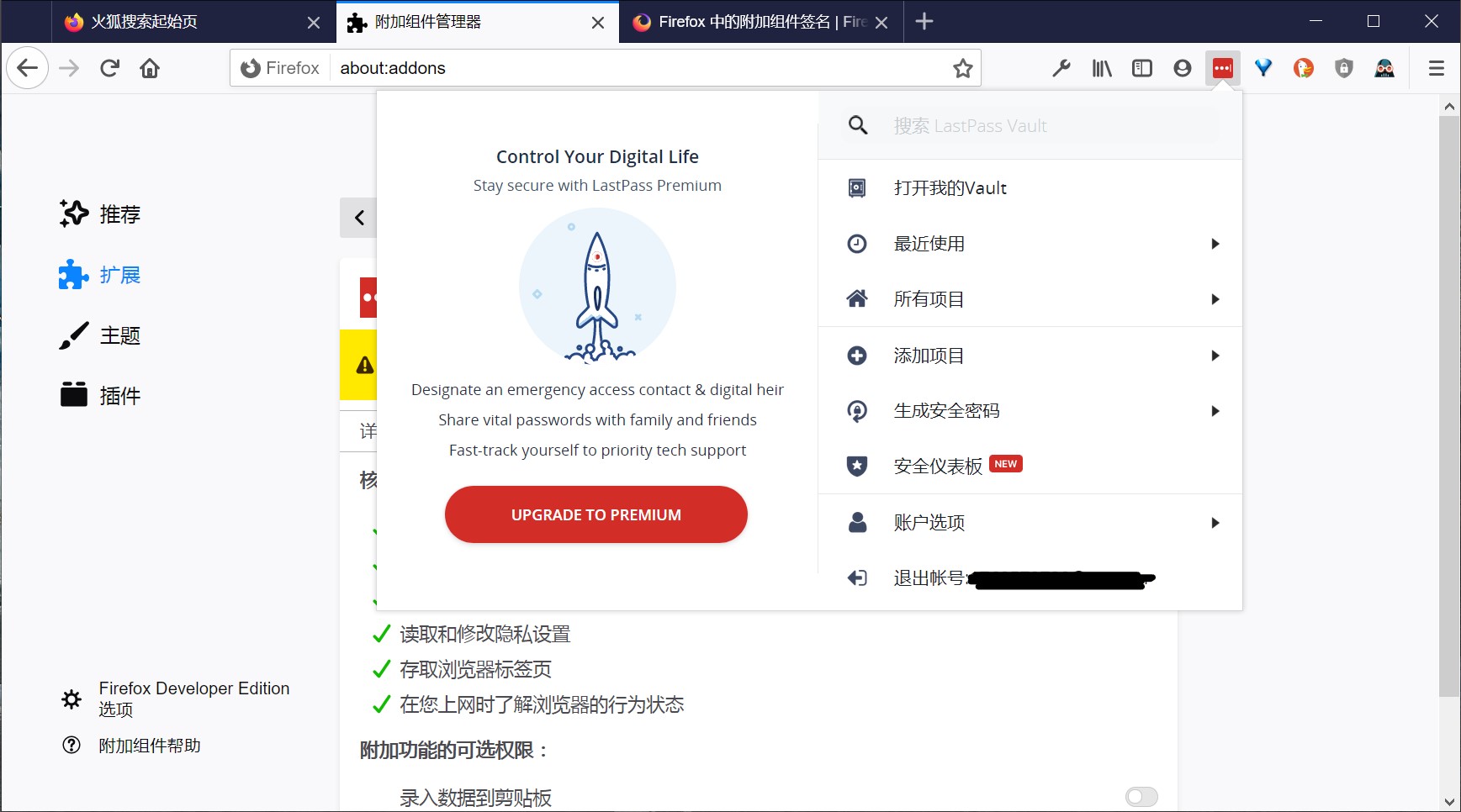 打开 support@lastpass.com.xpi