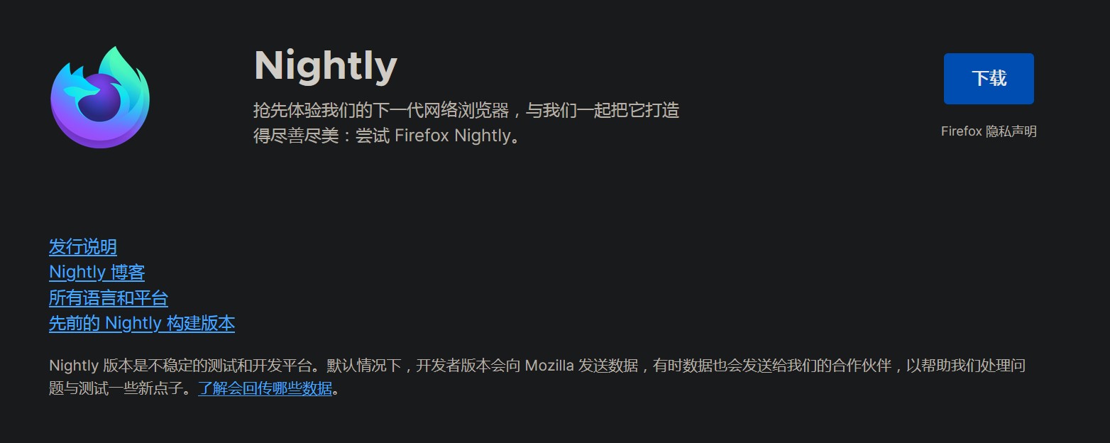 去下载Firefox 开发者版 或Nightly版 (以开发者版为例)