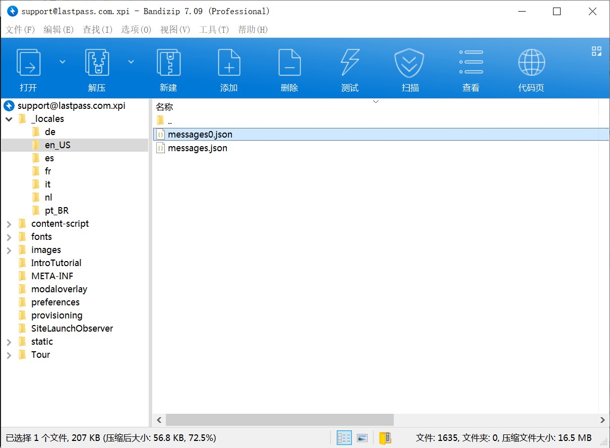 注意:每一次更新LastPass扩展都需要汉化一次!更新会自动覆盖语言包!